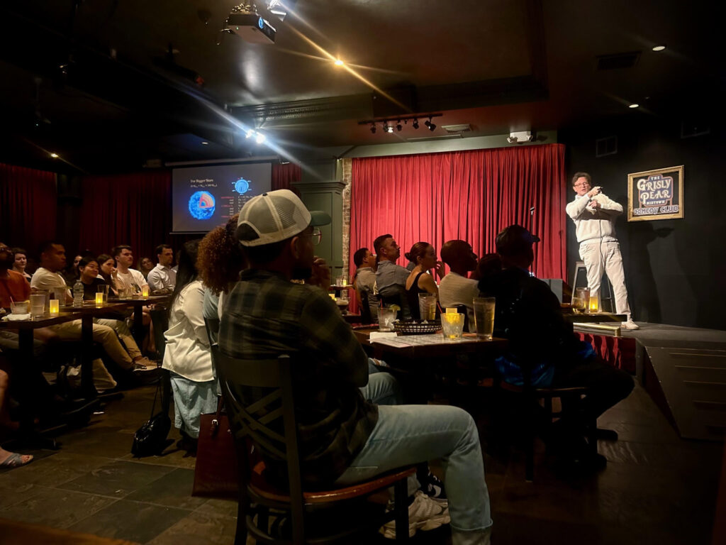 “New York audiences don’t come to be talked at—they come to think, laugh, and be engaged,” said Dr. White. “If I’m doing it right, we’re not just learning science, we’re working the problem together!”